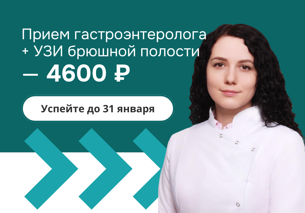 Акция включает приём врача-гастроэнтеролога и УЗИ органов брюшной полости, что позволяет сразу оценить состояние пищеварительной системы и понять причину жалоб.