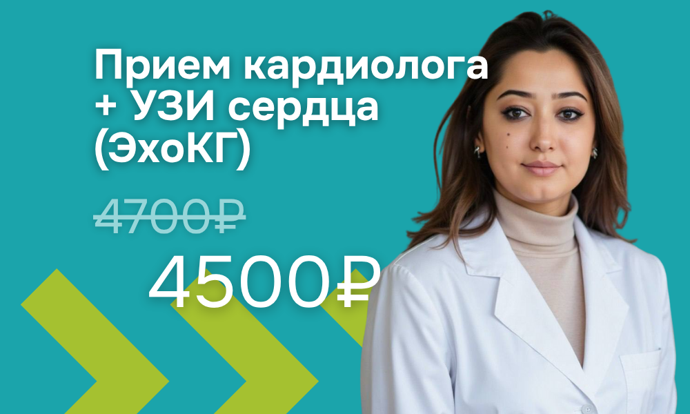 Приём кардиолога + УЗИ сердца (ЭХО-КГ) — 4500 ₽