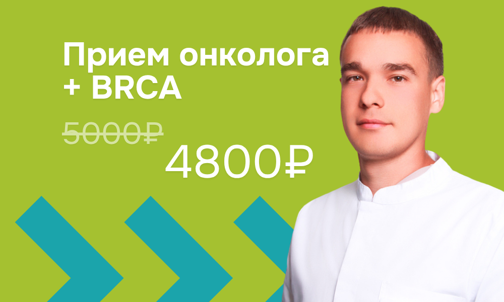 Приём врача-онколога и тестирование BRCA (мутации, ассоциированные с риском рака груди и яичников). Раннее выявление риска онкологических заболеваний помогает своевременно принять меры профилактики и лечения.