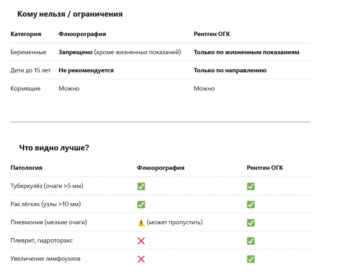 В «Медклик» нет флюорографии — вместо неё мы проводим более детальную цифровую рентгенографию органов грудной клетки, которая полностью принимается для медосмотров и идеально подходит для ежегодной профилактики благодаря высокой чёткости и минимальной дозе облучения.